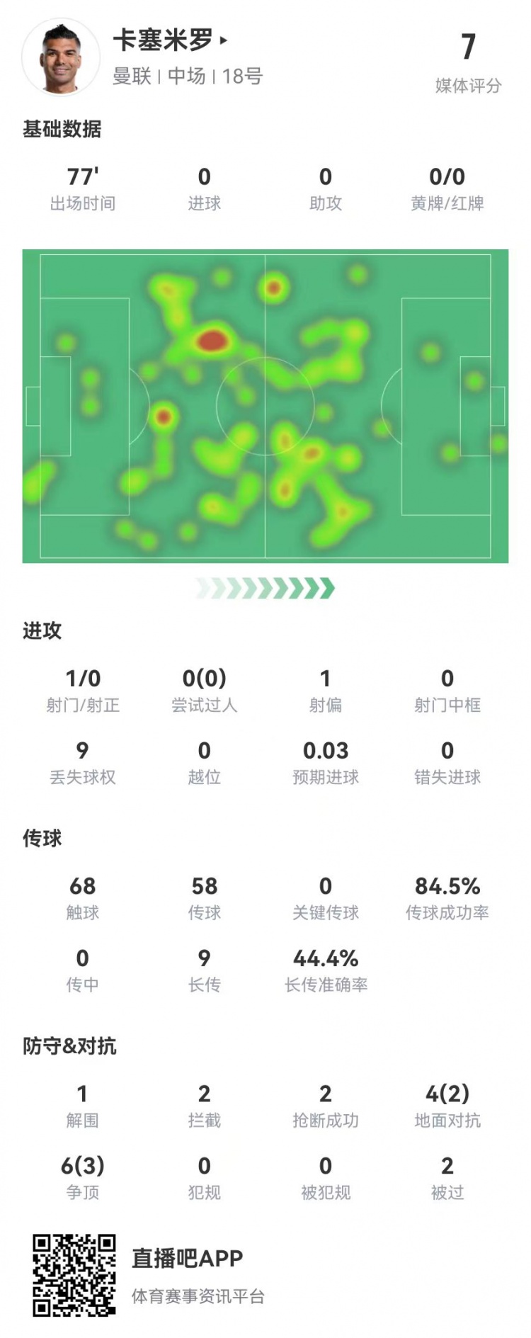 2025-03-14 08:01:23卡塞米羅本場11對抗6成功 3搶斷2攔截+4成功長傳 獲評7.0分