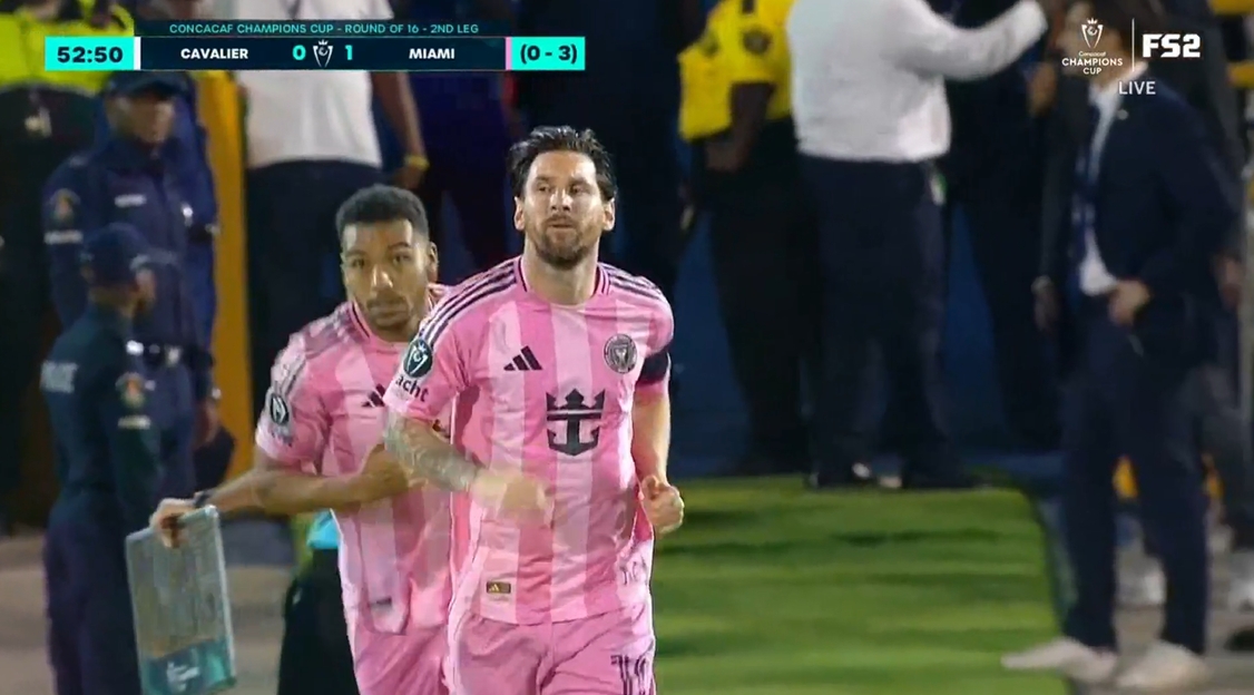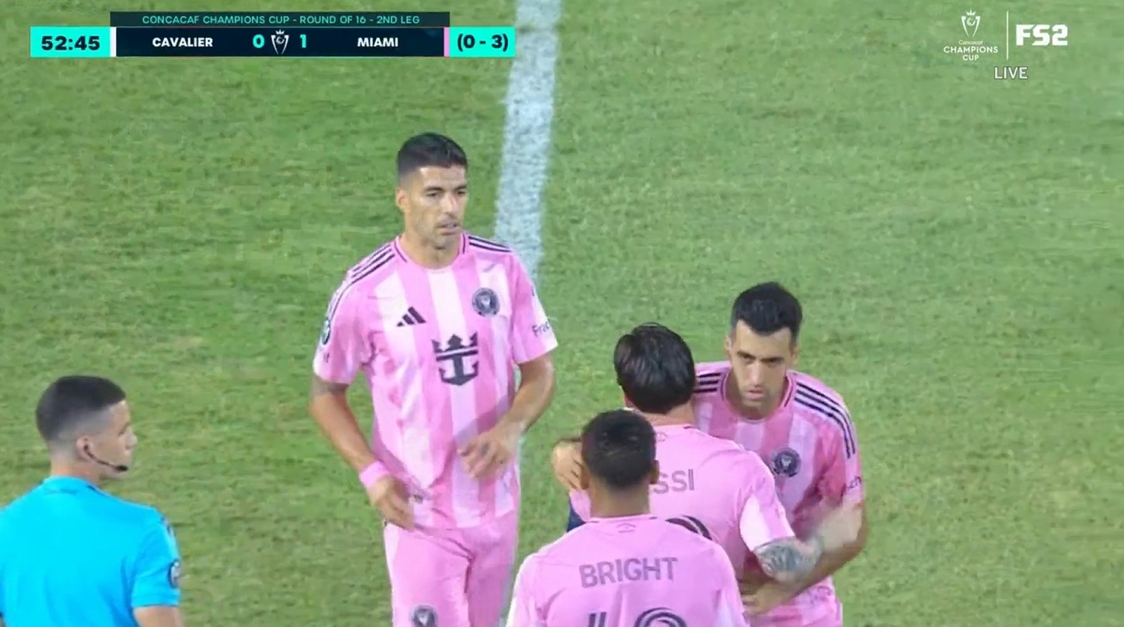 2025-03-14 12:00:02他來了!比賽第53分鐘梅西替補上場,蘇亞雷斯、布斯克茨被換下