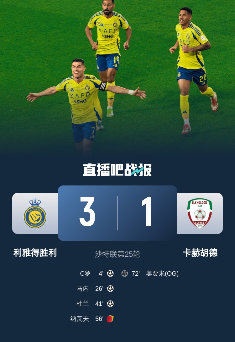 2025-03-15 03:53:142025年03月15日 C羅928球+策動!十人勝利3-1卡赫胡德距榜首10分 馬內杜蘭破門