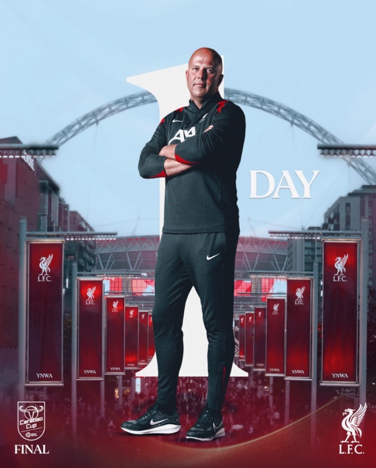 2025-03-15 18:29:34利物浦曬海報預熱聯(lián)賽杯決賽,斯洛特單人出鏡