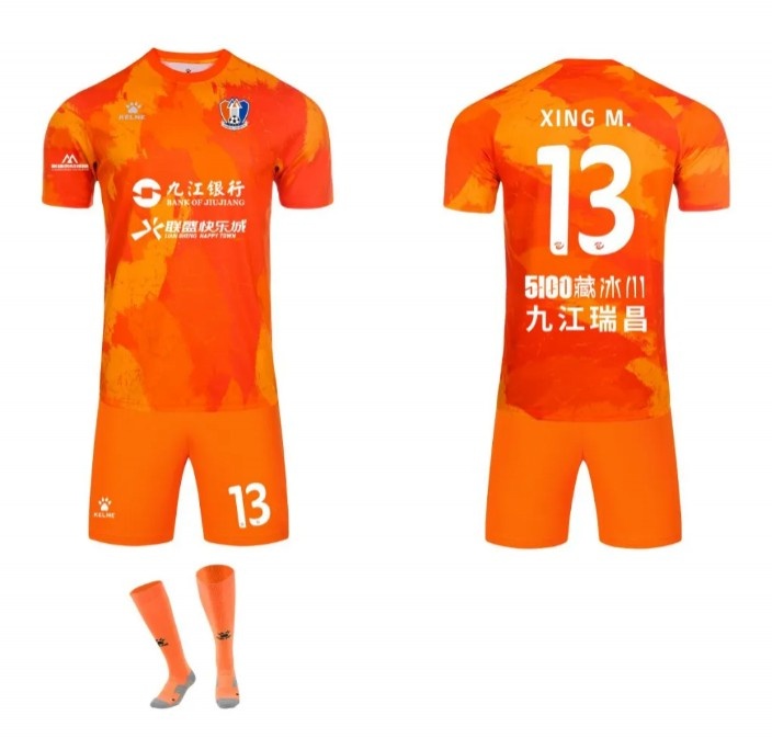 主場戰(zhàn)袍延續(xù)了江西廬山隊經(jīng)典的橙色主色調(diào),象征著激情、活力與勝利。球衣正面采用漸變設(shè)計,猶如長江之水奔流不息,寓意著江西足球生生不息,勇往直前。球衣背面印有“九江瑞昌”字樣,彰顯著球隊為江西、為九江、為瑞昌榮譽而戰(zhàn)的決心。