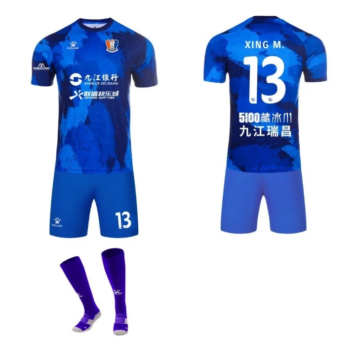 第一客場戰(zhàn)袍采用沉穩(wěn)大氣的深藍色,彰顯球隊沉穩(wěn)冷靜、從容不迫的氣質(zhì)。以浩瀚星空為靈感,將深邃的藍色作為主色調(diào),象征著江西廬山足球俱樂部胸懷遠大理想,在綠茵場上追逐夢想,永不言棄的精神。
