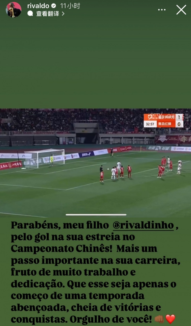 2025-03-16 16:40:16里瓦爾多祝賀兒子中甲首秀破門:愿這只是一個充滿勝利賽季的開始