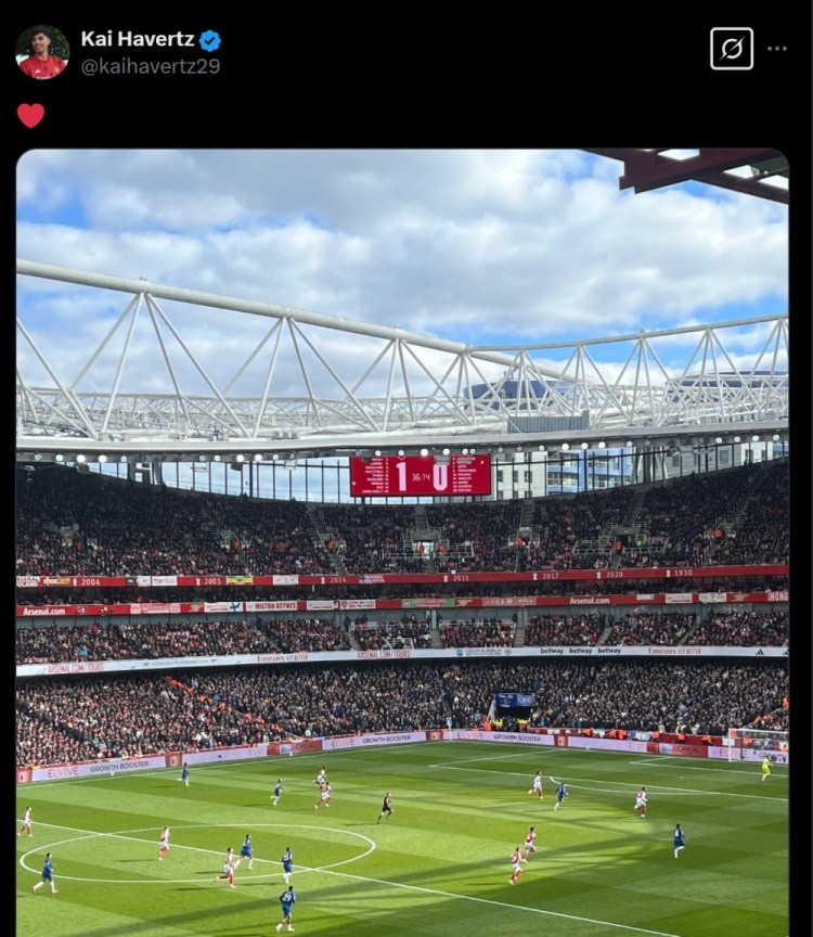 2025-03-17 02:10:10心系球隊?哈弗茨賽后曬比分牌,慶祝阿森納擊敗老東家切爾西