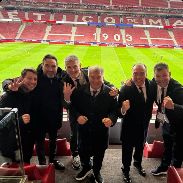 2025-03-17 11:21:00客場逆轉繼續領跑積分榜!拉波爾塔等巴薩高層合影慶祝勝利