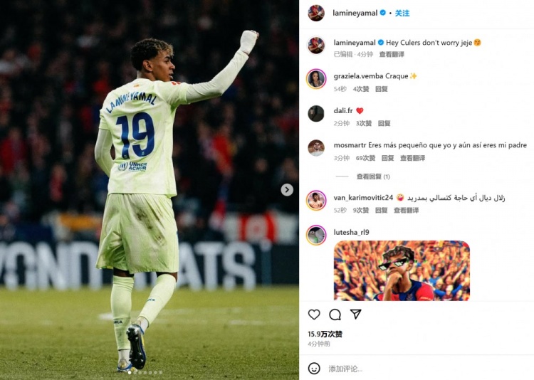 2025-03-17 11:21:05打破西甲4個半月進球荒!亞馬爾社媒曬照慶祝:巴薩球迷們別擔心