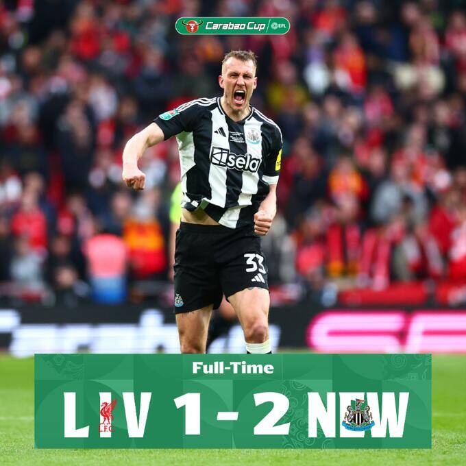 利物浦1-2紐卡斯爾,無緣衛冕,紐卡斯爾則贏下隊史首座聯賽杯冠軍。