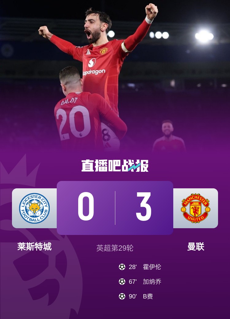 2025-03-17 03:49:562025年03月17日 賽季4殺!曼聯3-0萊斯特 B費1射2傳霍伊倫加納喬破門海文傷退