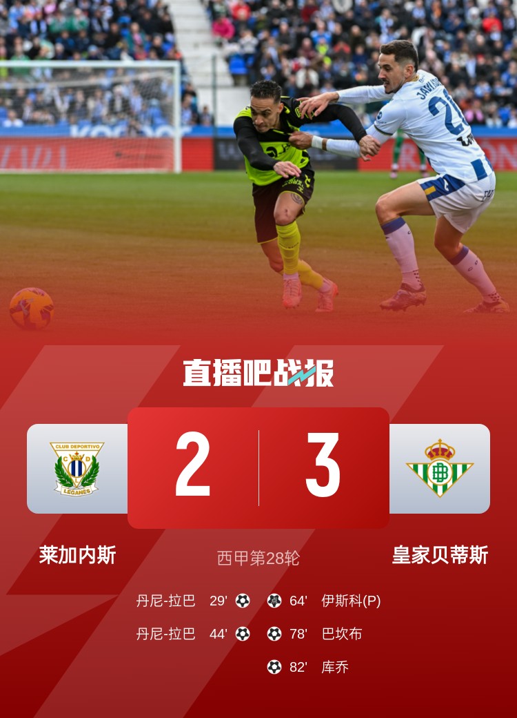 伊斯科點射,安東尼策動絕殺,皇家貝蒂斯3-2逆轉萊加內斯,西甲5連勝。
