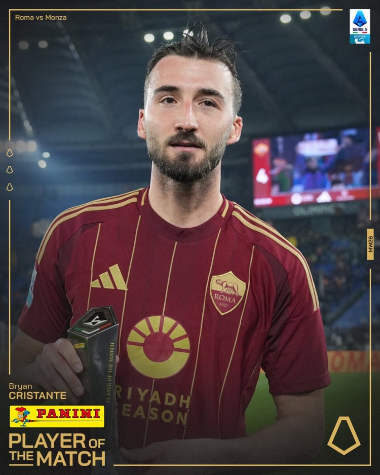 2025-02-25 10:01:17傳射建功!克里斯坦特當選羅馬4-0蒙扎全場最佳球員