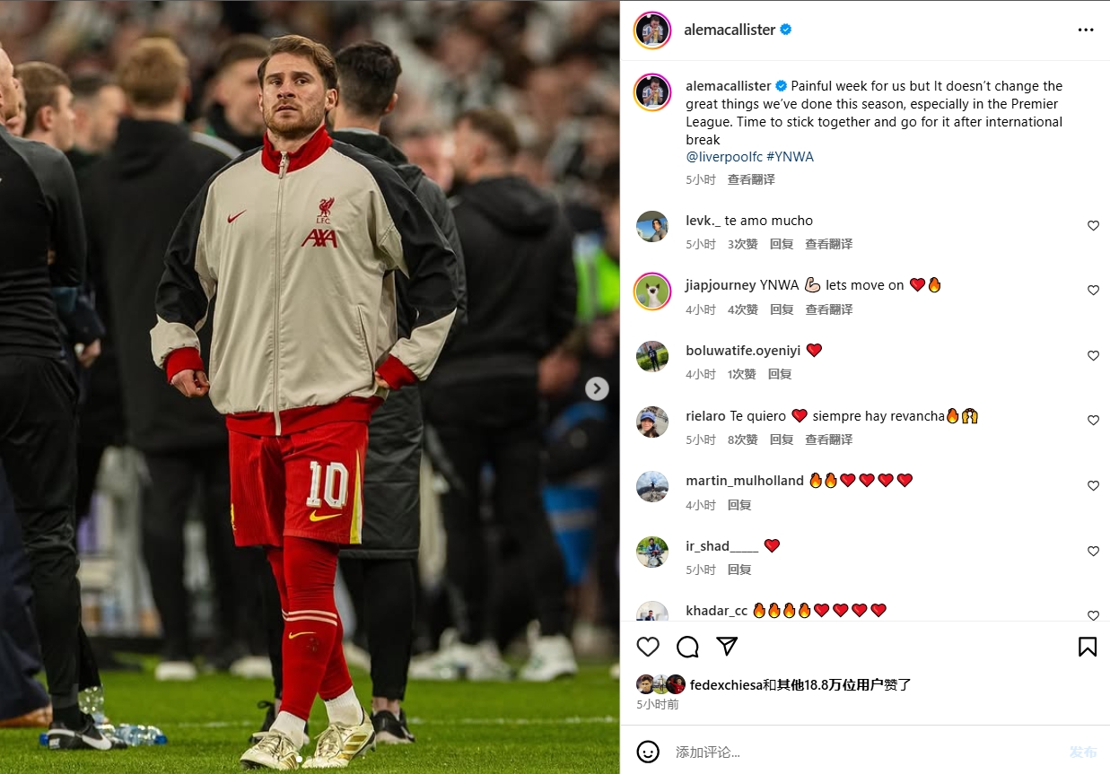 2025-03-18 15:19:13麥卡利斯特社媒:這是痛苦的一周,國(guó)際比賽日后要全力以赴