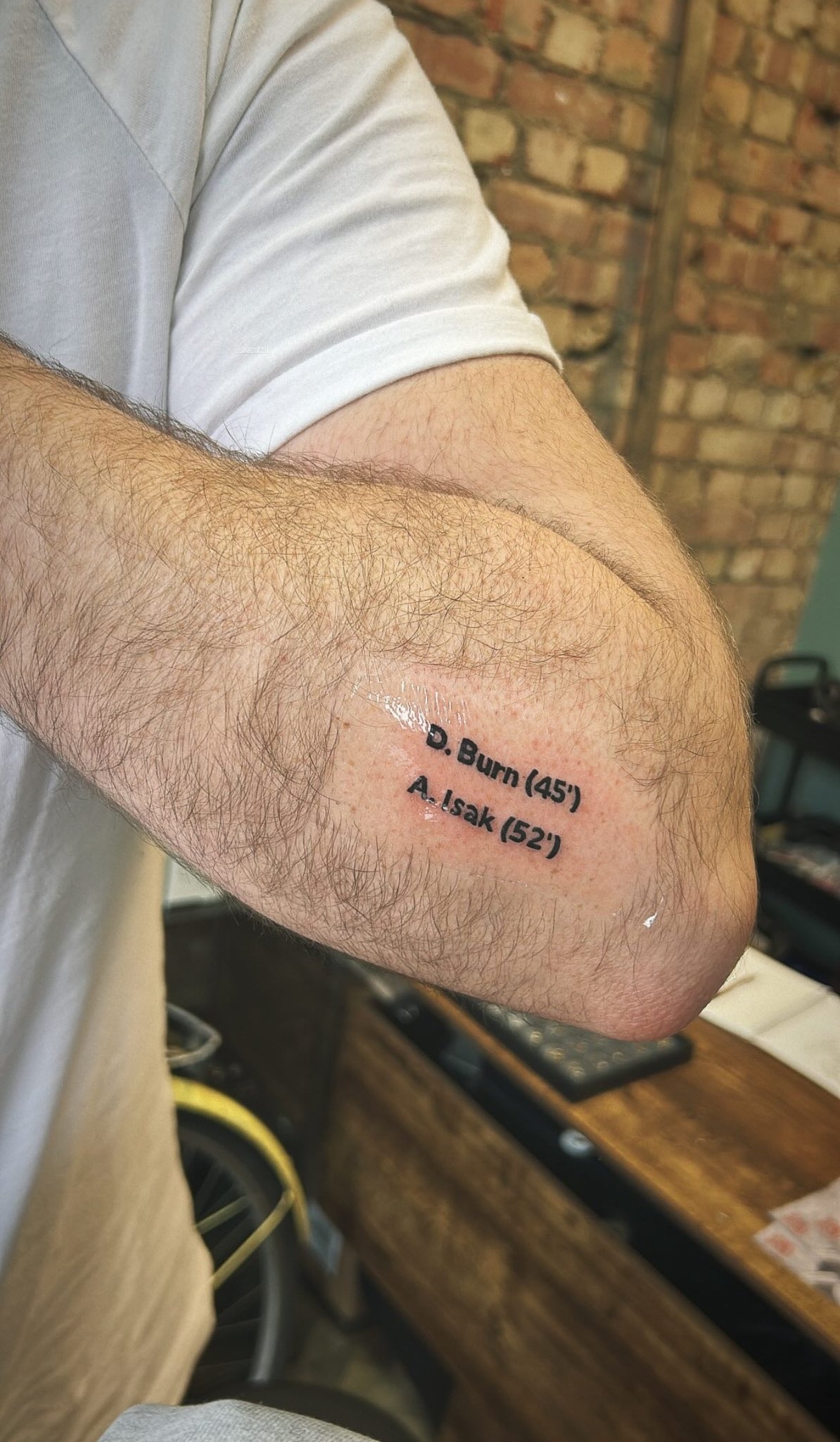 2025-03-18 21:27:2370年1次!聯賽杯奪冠后 紐卡球迷把丹伯恩和伊薩克姓名紋到手臂上