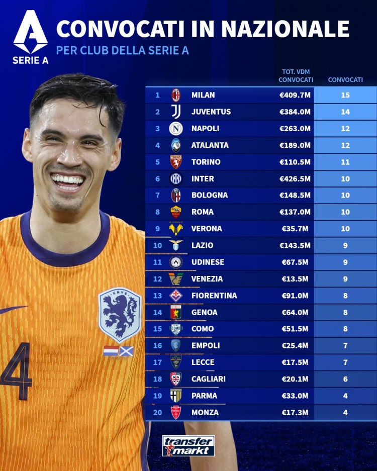 2025-03-18 21:27:40意甲國(guó)家隊(duì)征召人數(shù):米蘭15人最多,尤文14人次席&國(guó)米10人