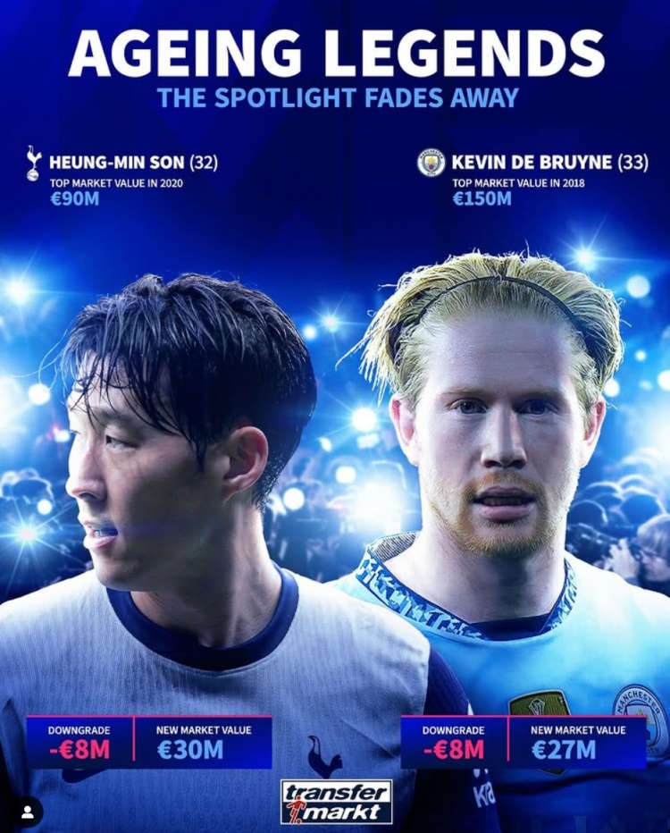 2025-03-19 03:41:2232歲孫興慜&33歲德布勞內身價各降800萬歐,巔峰身價9千萬&1.5億