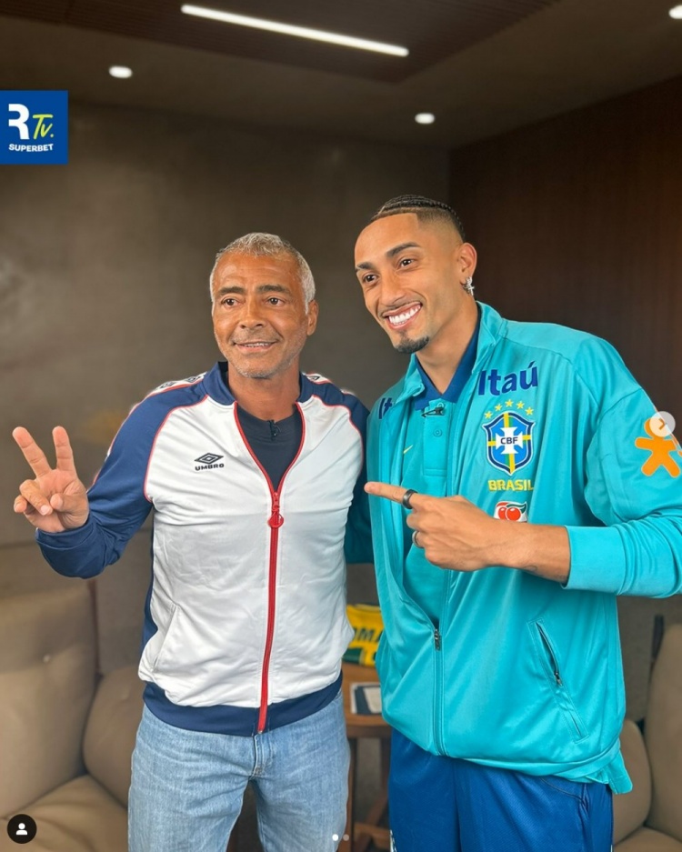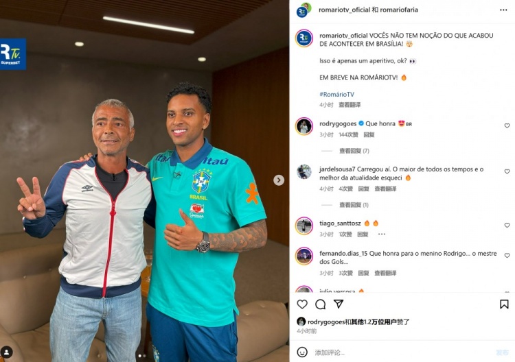 2025-03-19 22:26:35羅德里戈&拉菲尼亞&恩德里克做客電視節(jié)目,與羅馬里奧合影留念