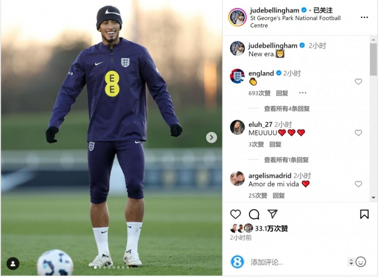 2025-03-20 17:48:27貝林厄姆社媒曬英格蘭隊(duì)訓(xùn)練照:三獅軍團(tuán)新時(shí)代