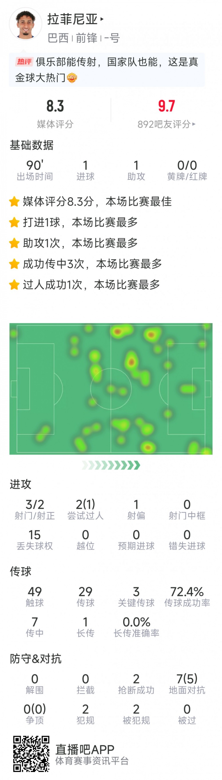 2025-03-21 11:55:27拉菲尼亞本場數據:傳射建功,3次關鍵傳球,3射2正,2次搶斷