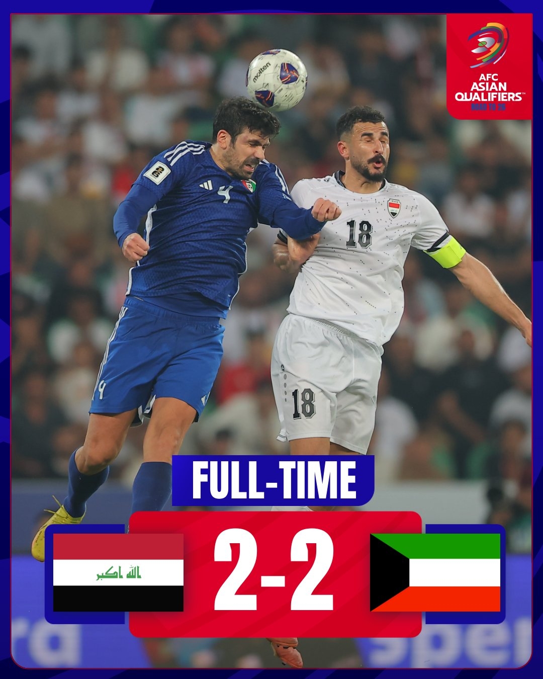 2025-03-21 12:07:01101分鐘絕平!世預賽伊拉克補時階段連進兩球,2-2戰平科威特