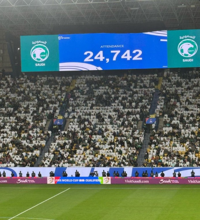 2025-03-21 12:08:32國足0-1客負(fù)沙特,本場比賽現(xiàn)場觀眾人數(shù)為24742人
