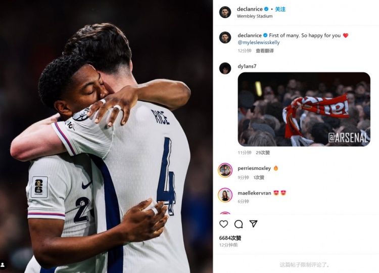 2025-03-22 11:04:57賴斯社媒曬與斯凱利擁抱照:未來眾多進球里的第一個!為你開心