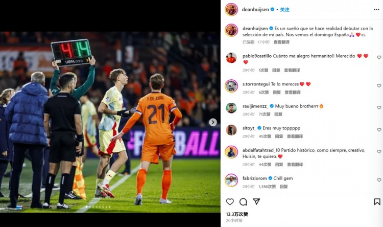2025-03-22 11:07:23懷森社媒紀念國家隊首秀:夢想成真!我們回到西班牙再見