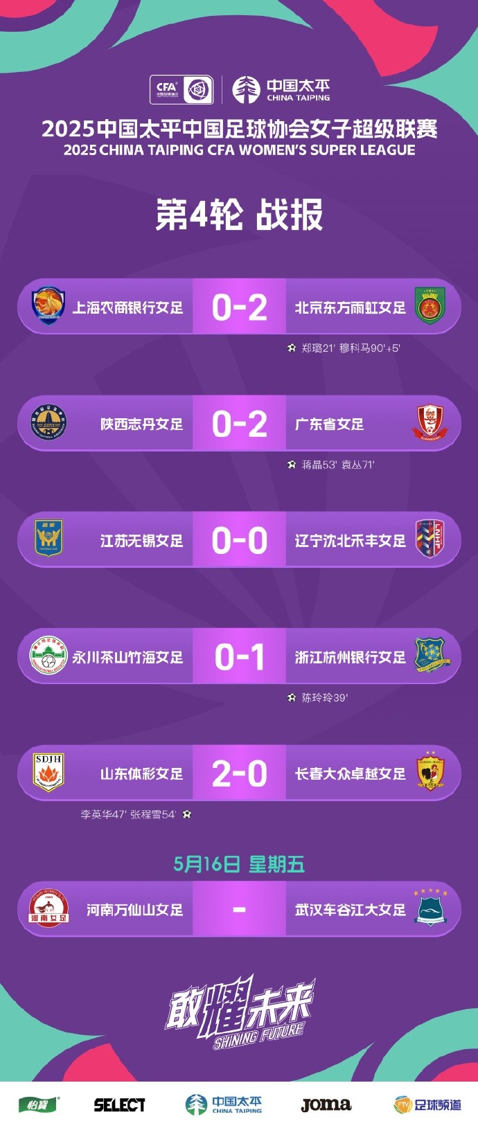 2025-03-23 20:20:552025中國(guó)太平女超聯(lián)賽第4輪戰(zhàn)報(bào) ???