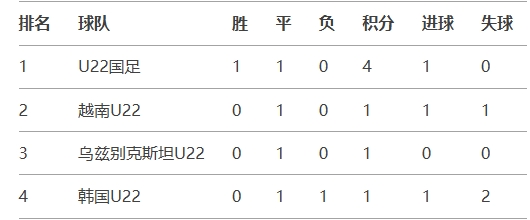 2025-03-23 20:24:50U22邀請賽積分榜:U22國足1勝1平0失球暫居第一,末輪對陣越南