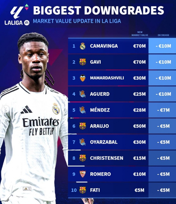 2025-03-24 06:14:34西甲身價貶值榜:加維、法蒂領(lǐng)銜巴薩4將,卡馬文加&瑪瑪達在列