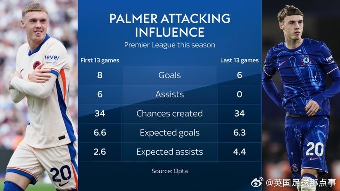 2025-02-25 20:03:10天空體育:帕爾默過去13場英超創(chuàng)造34次機會,但沒有收獲一個助攻