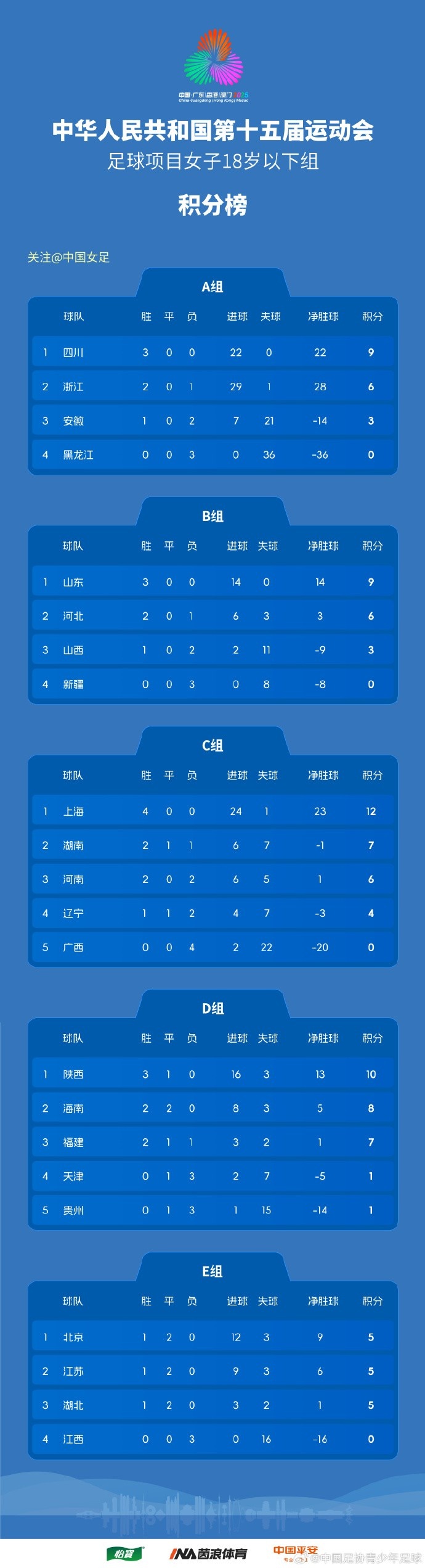 2025-03-24 19:32:10全運會女足U18資格賽(CD組)第5輪、(ABE組)第3輪賽果+積分榜