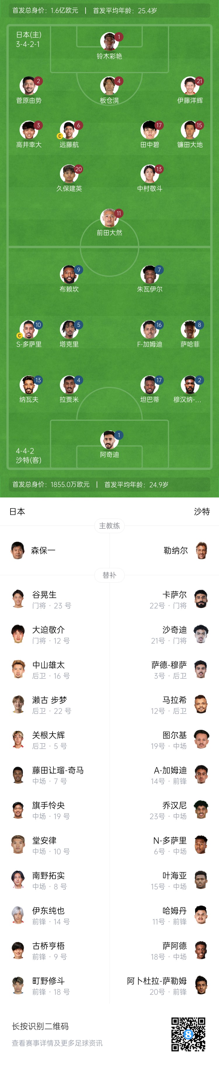 2025-03-25 18:21:44日本vs沙特首發:久保建英、前田大然、遠藤航出戰,多薩里先發