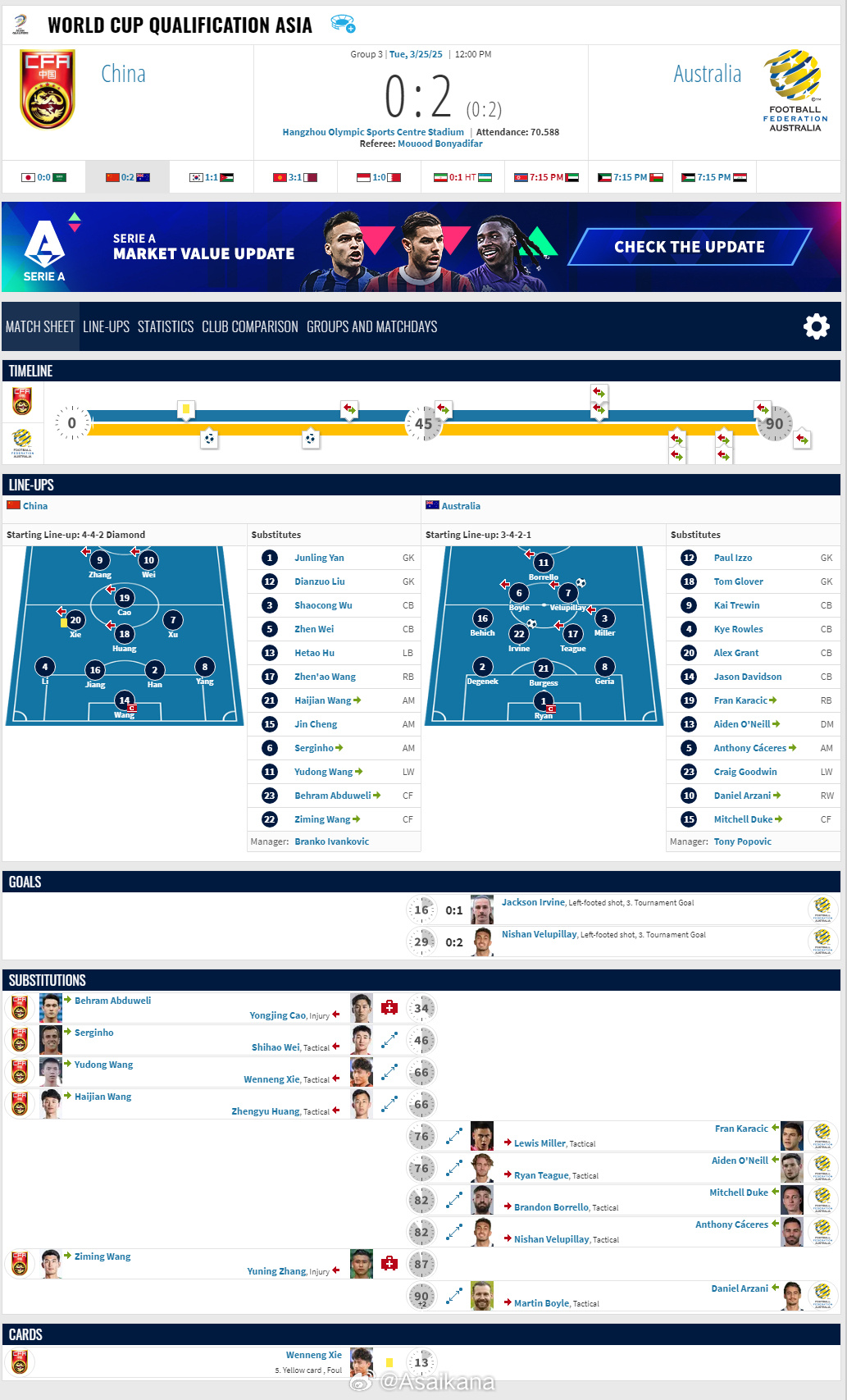 2025-03-26 03:56:272026年世界杯亞洲區預選賽,中國0-2澳大利亞比賽報告 ???