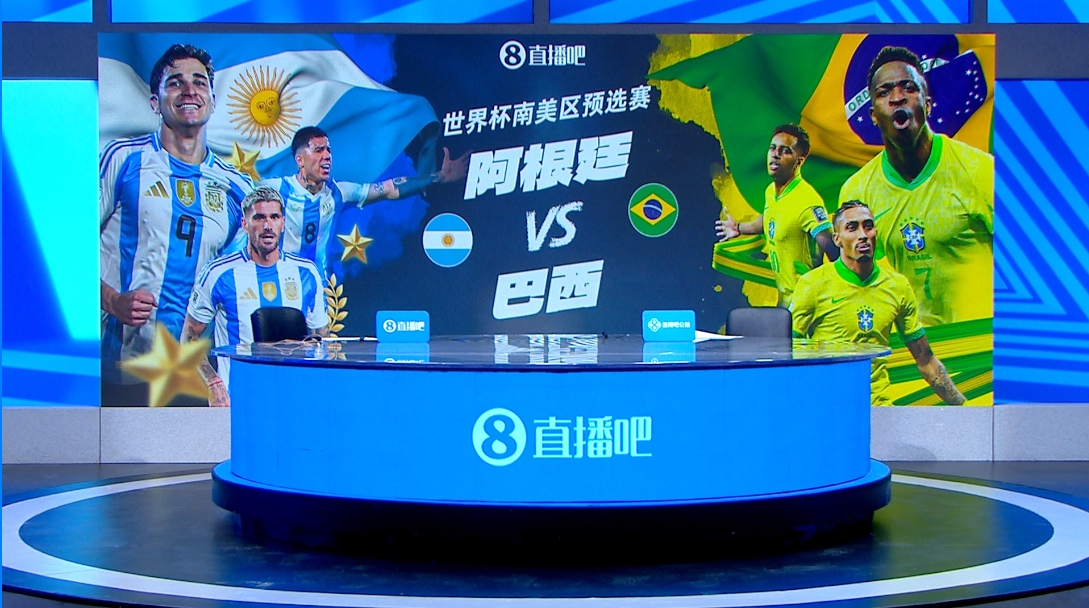 2025-03-26 11:23:55直播吧演播室準備就緒,靜待南美德比!于鑫淼、王正坤解說