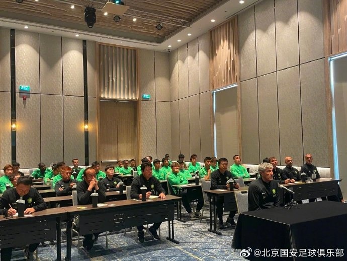 周金輝董事長的發言鼓舞了全隊的士氣,隊長張稀哲隨后代表全體隊員發言,他說:“新教練組的到來重塑了我們的足球思維,起初或許有磨合的陣痛,但現在,我們清晰感受到——這支團隊的心跳得更快、更齊了。我們也將在主教練的帶領下,同心協力,一切以團隊為先,集體為先。遵守隊規,遵守賽風賽紀,堅守職業道德。身披綠色戰袍的這些年,工體山呼海嘯的吶喊早已刻進骨髓。我們記得球迷在場內堅毅又期待的目光,記得數以萬計的的綠色圍巾,更記得一次次場內tifo給予我們的力量。新賽季的倒計時已經響起!我們會像捍衛家門一樣守護每一寸球場。沒有保留,沒有退路,唯有將每一分鐘燃燒到極致——為了北京,為球迷,更為了我們的信仰,“國安永遠爭第一”!”