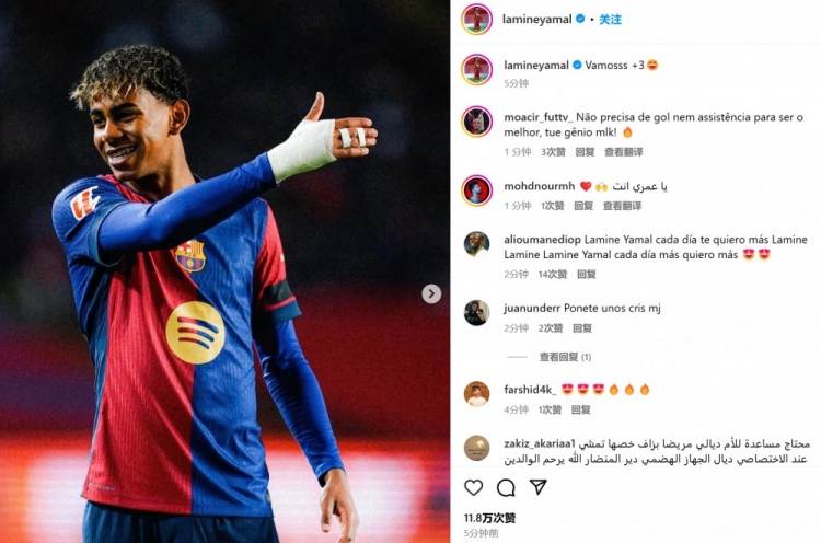 2025-03-28 13:19:27亞馬爾社媒曬照慶祝勝利:讓我們繼續前進!再添三分!