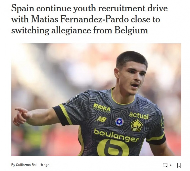 2025-02-26 10:01:17TA:西足協招募里爾20歲中鋒帕爾多,后者將不再效力比利時隊