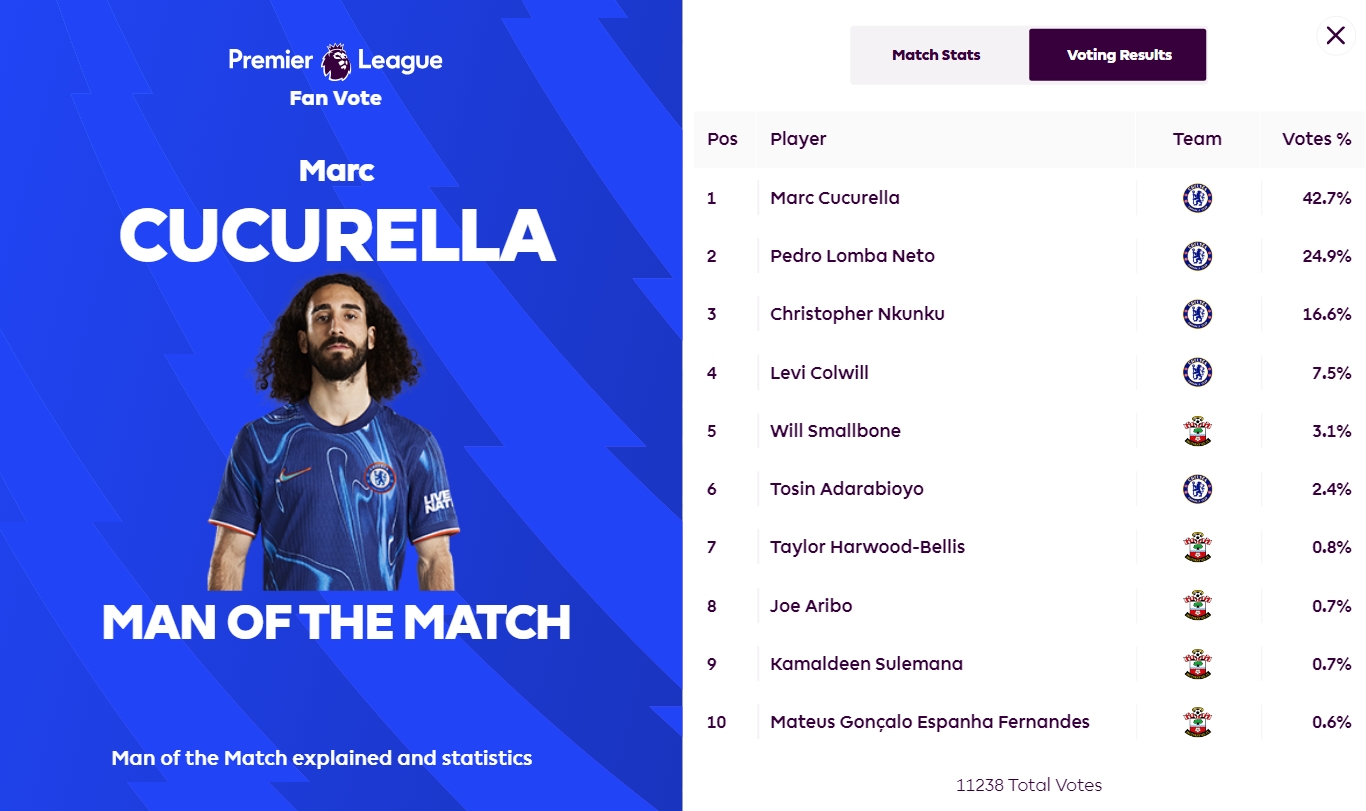 2025-02-26 10:02:10攻防俱佳!庫(kù)庫(kù)雷利亞當(dāng)選切爾西4-0南安普頓全場(chǎng)最佳球員