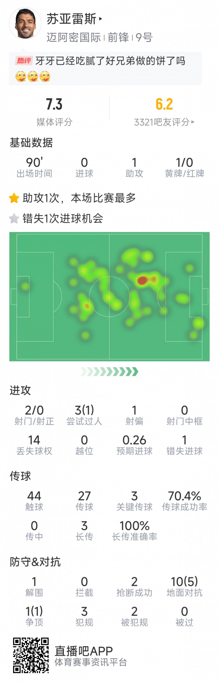 2025-03-30 14:06:39蘇亞雷斯本場數(shù)據(jù):助攻梅西破門,3次關(guān)鍵傳球,1次錯失良機(jī)