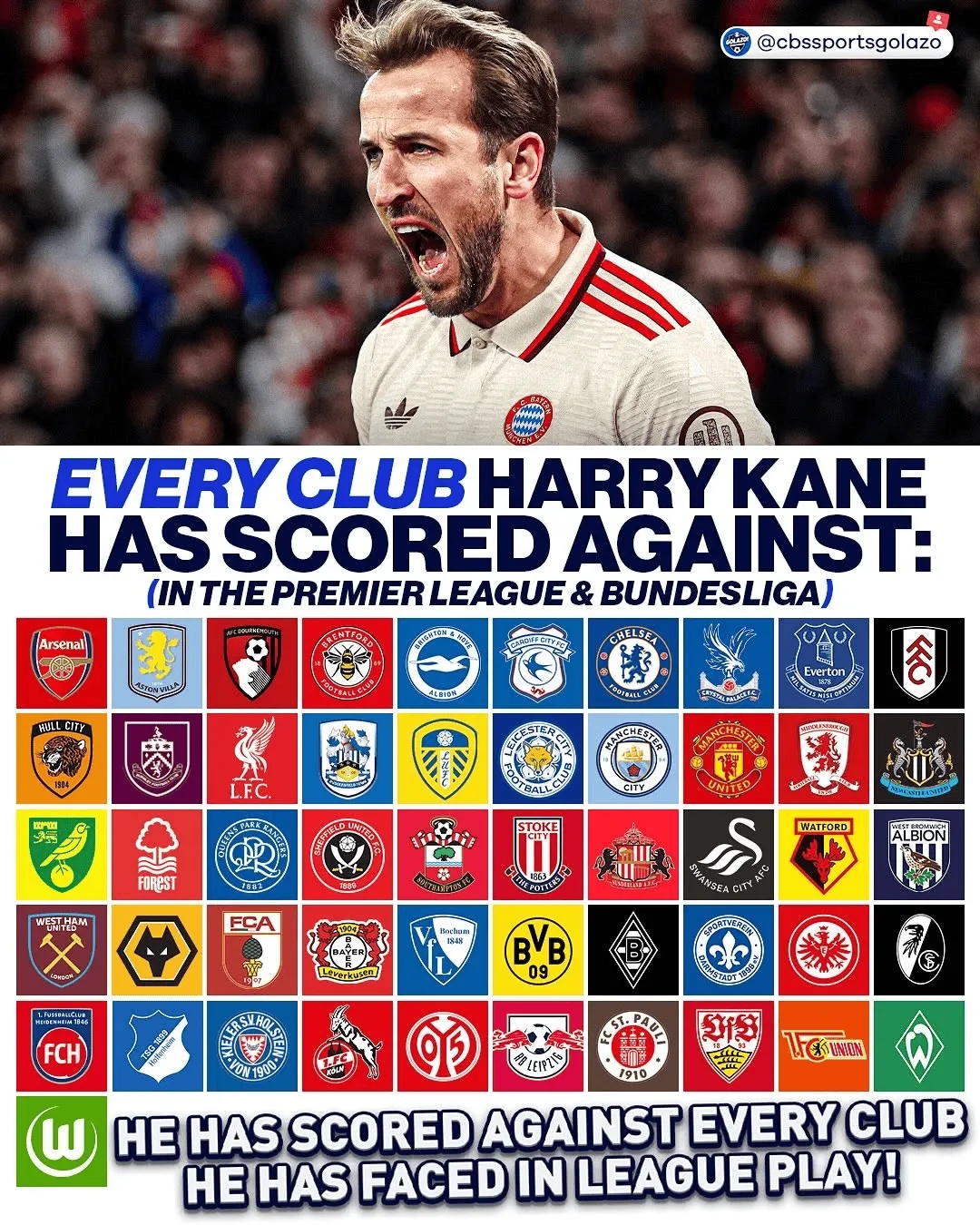 2025-03-30 14:10:54通殺,凱恩德甲、英超對(duì)陣51家俱樂部均完成破門