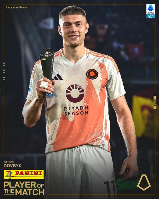 2025-03-30 14:12:05打入制勝進球!多夫比克當選羅馬1-0萊切一役全場最佳