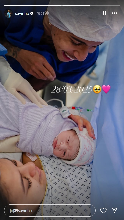 2025-03-30 14:13:14恭喜!薩維尼奧社媒曬照慶祝孩子出生