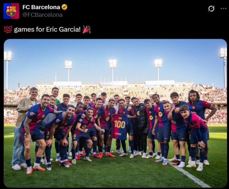 2025-03-31 01:59:30埃里克-加西亞迎巴薩百場里程碑,獲贈(zèng)紀(jì)念球衣&與全隊(duì)合影留念