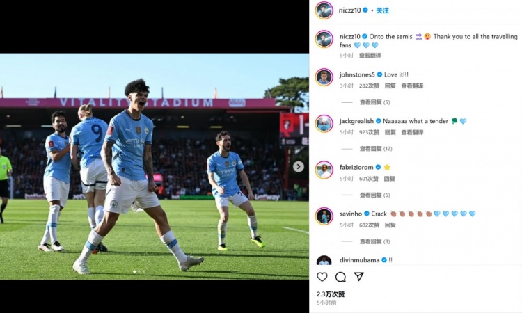 奧賴利也在賽后通過社媒曬出自己的慶祝照并配文:“晉級半決賽????????感謝所有的遠征球迷????????????”。包括斯通斯和格拉利什在內(nèi)的多位隊友也現(xiàn)身評論區(qū)鼓勵:“愛了愛了”、“多棒的自我展示!”…
