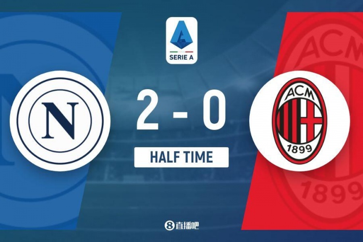上半場比賽結束,那不勒斯主場暫時2-0領先AC米蘭。
