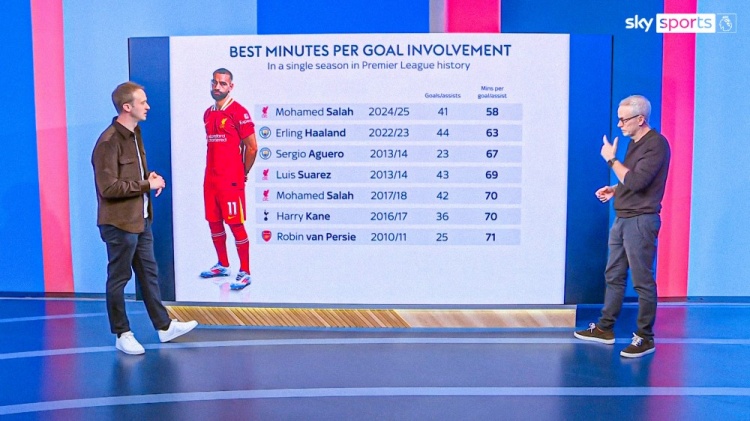 2025-02-26 20:04:13薩拉赫本賽季英超每58分鐘制造1球,有望創造英超歷史紀錄