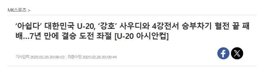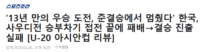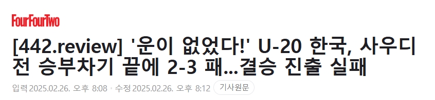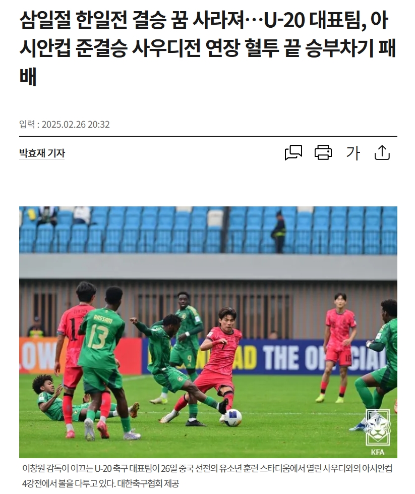 2025-02-26 20:04:16韓媒賽后哀嘆:U20無緣重奪亞洲霸主;韓日決賽的夢想破滅……