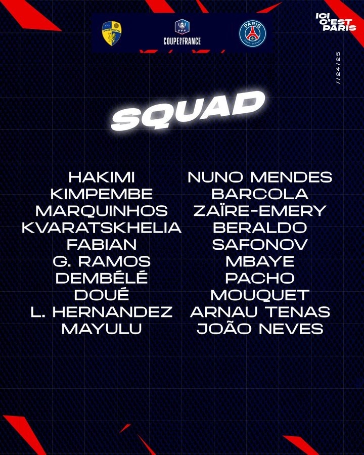 2025-02-26 20:04:37巴黎法國杯大名單:李剛仁&維蒂尼亞&多納魯馬缺席 小埃梅里回歸