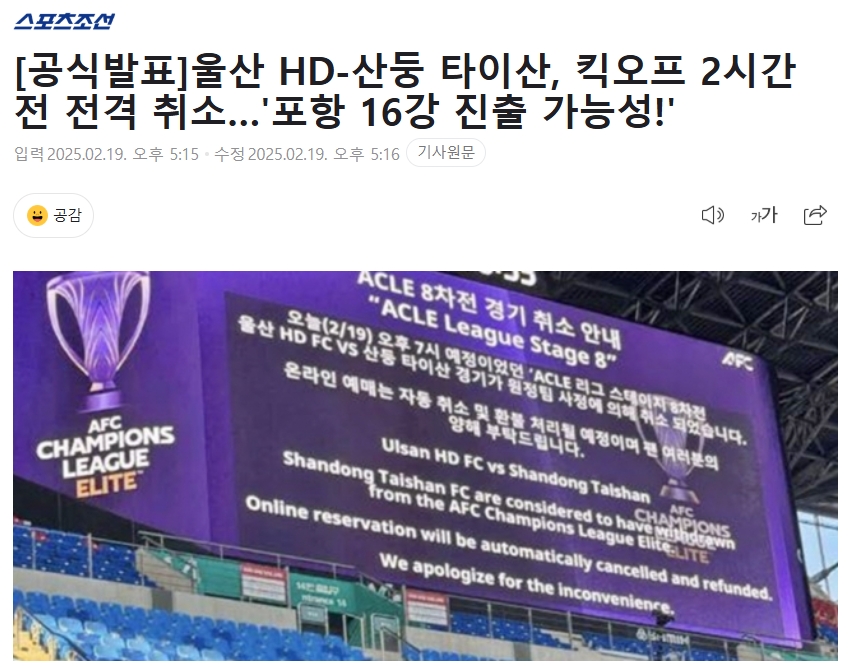 2025-02-19 20:25:08泰山退賽!亞冠官推僅預熱今晚海港的比賽,泰山比賽無任何預告