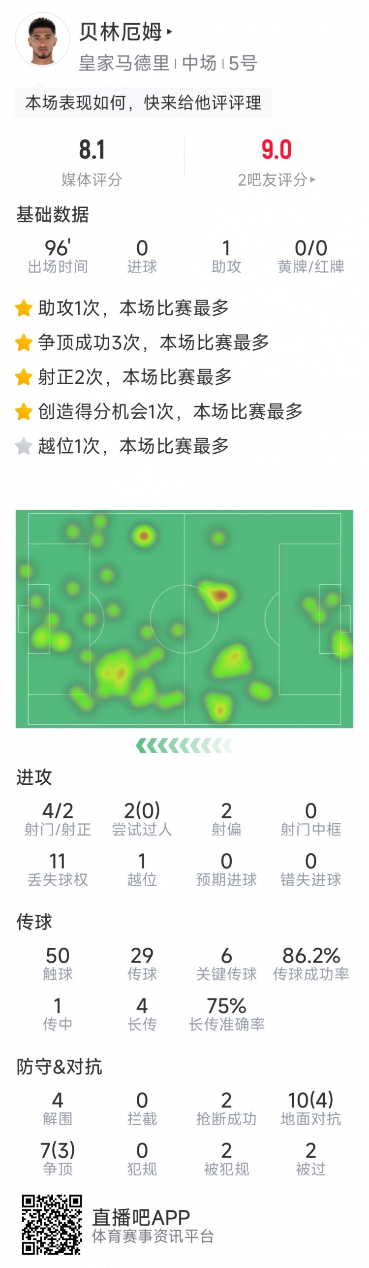 2025-02-27 10:01:34貝林厄姆本場(chǎng)數(shù)據(jù):1次助攻,6次關(guān)鍵傳球,4射2正