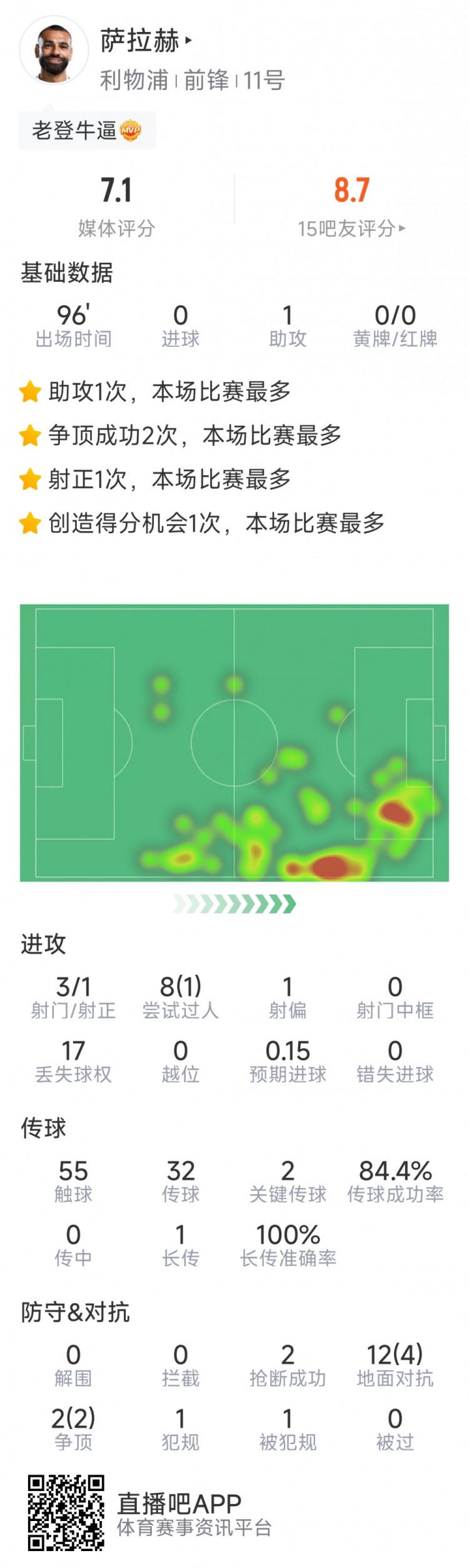 2025-02-27 10:01:46薩拉赫本場數據:1次助攻,2次關鍵傳球,3次射門1次射正